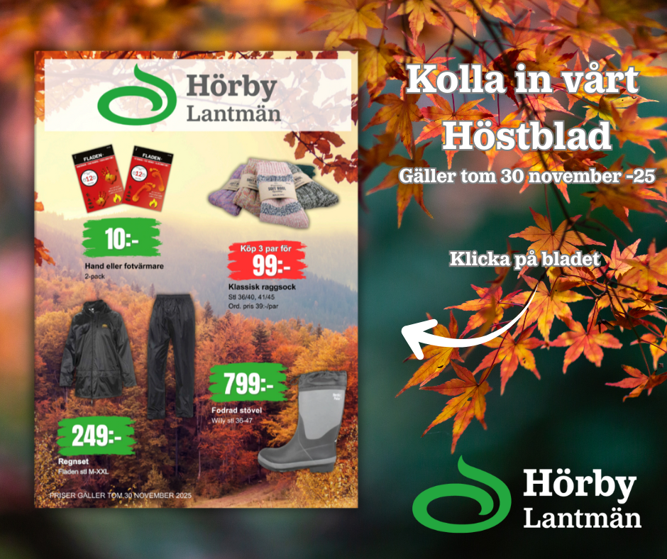 Beställ före 12:00 så levererar vi före 15 dagen efter (OM varan finns på lager). Varan ställs då utanför er dörr med följesedel eller kvitto bifogad (vi ringer innan leverans – ansvaret för varan som ställs vid dörren är kundens).